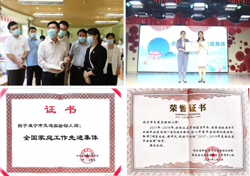 走过艰难的探索道路,咸宁市交通实验幼儿园家庭教育工作稳步向前。先后荣获“全国家庭工作先进集体”“省级文明单位”“省级平安校园”“省语言文字规范化示范园”等众多荣誉称号,并获评为教育部首批“足球特色幼儿园”、“湖北省幼师国培基地园”。在优秀家庭及家庭教育工作者的带领下,幼儿园的家庭教育工作得到了省妇联、市妇联的高度认可,作为全市清廉家庭建设示范点,多次接受市领导和各单位的参观指导。