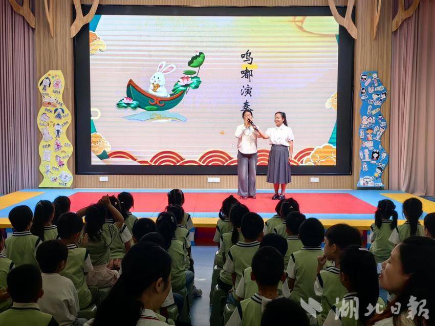 省级非物质文化遗产项目“嘉鱼呜嘟”的传承人毕琴走上讲台。她手中的鱼型土制乐器,看似质朴无华,却能发出深邃空灵的声音。随着他指尖的起伏,一曲悠扬的《映山红》将师生们带入了红军战士在中秋佳节思念故乡的场景中。学生们屏息凝神,被这首“泥土的歌谣”深深震撼。