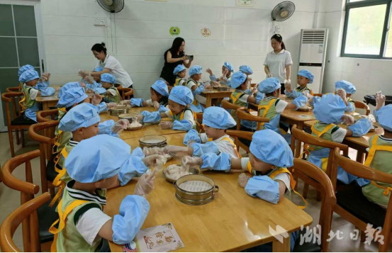 师生们在传承人的指导下一边亲手体验着手搓圆子,一边聆听圆子与长江、与簰洲湾的故事,明白了这道菜不仅是技艺的传承,更是嘉鱼人依水而居、勤劳智慧的生动写照。