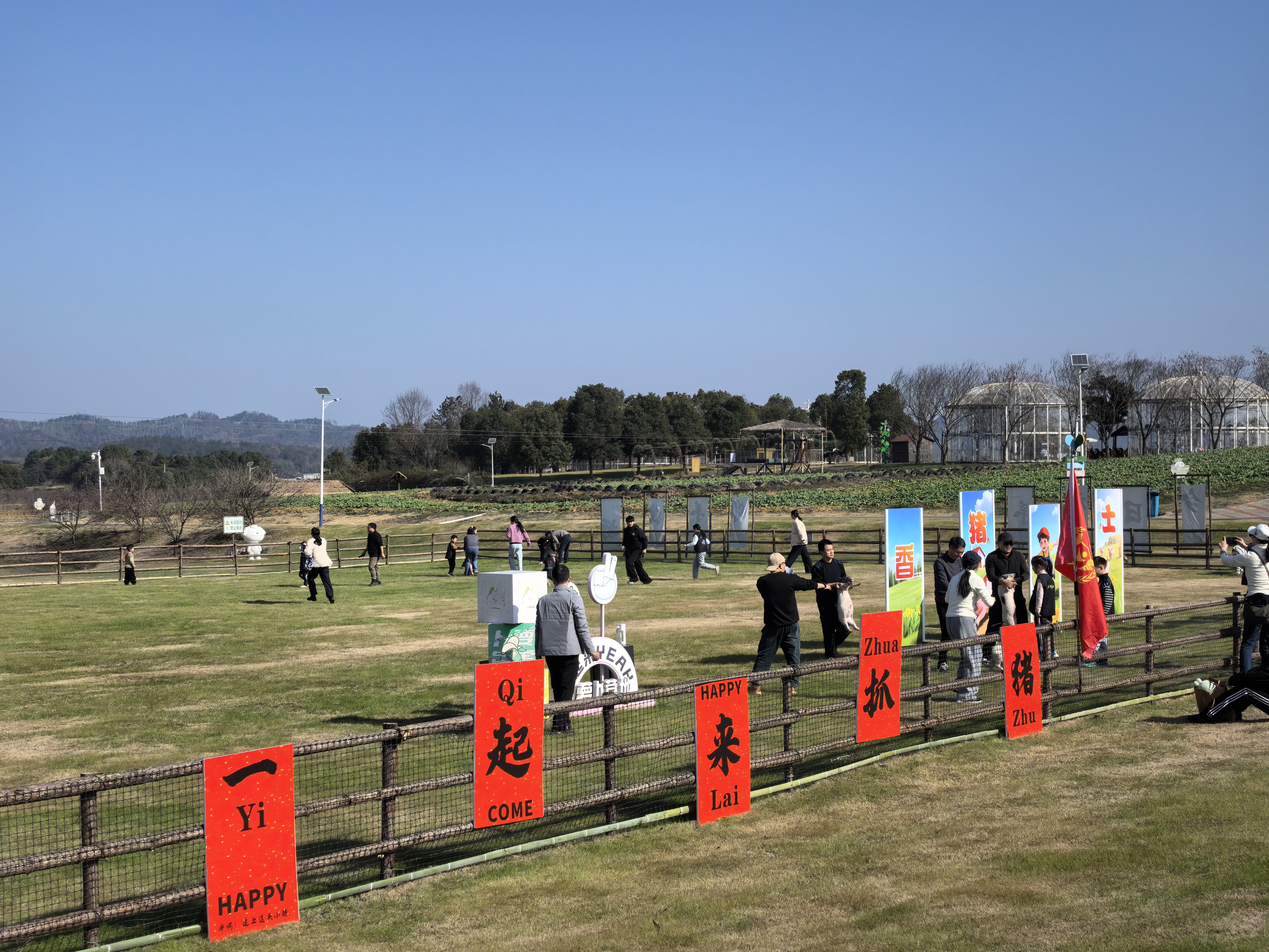 告别剧场的雅致,高桥镇萝卜公社里正上演着热火朝天的乡土狂欢。首届传统年猪文化体验季热闹开场,连续三天,“香猪勇士”挑战赛持续点燃游客热情。随着工作人员一声令下,参赛者们铆足干劲,在围栏内围追堵截圆滚滚的小香猪,在场内追逐嬉闹,场外呐喊助威,欢笑声此起彼伏。网友春兰花成功抱走两只小猪,她在活动群里分享出小猪在自家客厅“斗舞”的视频,直呼“真有意思”。