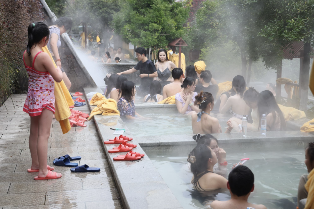 月亮湾的火热景象,在各大温泉景区同步上演——碧桂园凤凰温泉连续三天多次发布客流提示并强化引导服务。为承接高涨客流、提升游客体验、精准拉动消费,各景区精准发力构建“温泉+”多元产品矩阵,以组合消费延长游客停留时间、提升客单价: