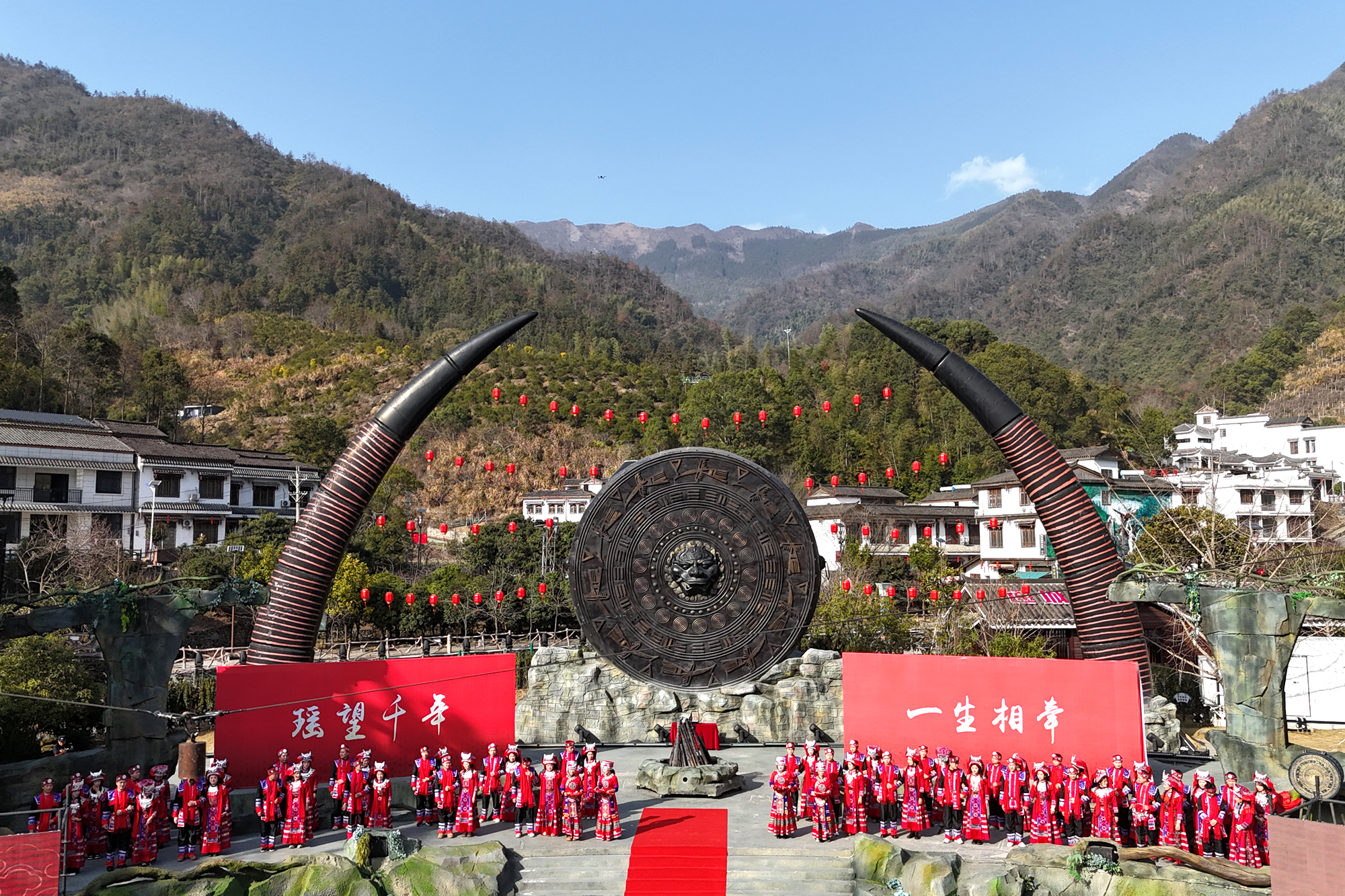 移风易俗,重在成风化人。2月11日,通城县药姑山古瑶景区内,“瑶望千年 一生相牵”集体婚礼在此举行,30对新人身着传统服饰,以简约庄重的方式践行移风易俗,让“婚事新办、喜事简办”的新风尚随着古瑶山歌传遍山乡。