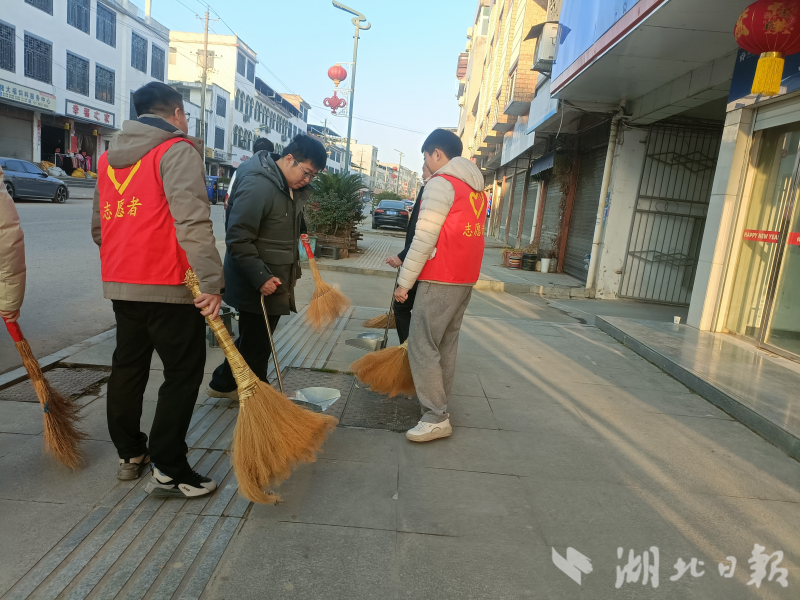 1月12日,在集镇中心路段,镇政府机关干部手持扫帚、铁锹,清理路面落叶和绿化带内的白色垃圾;市场监管所联合派出所对沿街商铺占道经营、乱摆乱放现象进行劝导整改;各村(社区)同步行动,组织村民清理房前屋后杂物、疏通排水沟渠、铲除墙面小广告,部分村庄还发动党员带头拆除废弃猪圈、鸡棚,腾出空间规划建设小花园、小菜园。