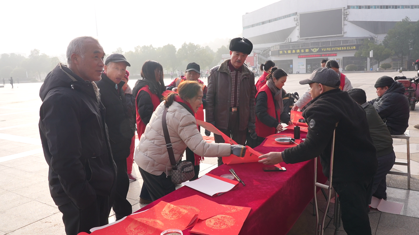 活动现场,三位残疾人书法家挥毫泼墨,笔走龙蛇。一副副寓意吉祥、翰墨飘香的春联和“福”字跃然笔下,一边传递着浓浓年味,一边展现了书法功底与自强不息的精神风貌。市民们或静静观赏,或精心挑选心仪的联句,收获特别的“文化年货”。