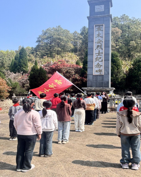 活动现场,师生列队步行至烈士陵园后,全体人员在袁太安烈士纪念碑前肃立。该校校长讲述了革命先烈的英勇事迹,号召同学们铭记历史、珍惜当下、奋发图强,并带领全体师生向烈士鞠躬默哀,表达深切哀思。
