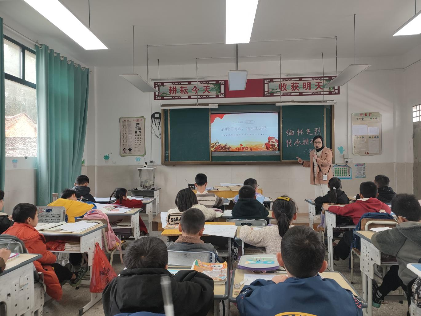 活动前期,学校德育处精心策划,通过主题班会、英烈故事宣讲、线上资料学习等形式,引导学生了解革命先烈的英勇事迹。各班级围绕“缅怀先烈传承精神”主题,通过多媒体课件、英烈图片、红色影像资料等方式,向学生生动讲述赵世当等革命先烈为民族独立、人民解放抛头颅、洒热血的光辉一生,让学生在图文与故事中感悟先烈的初心与担当。