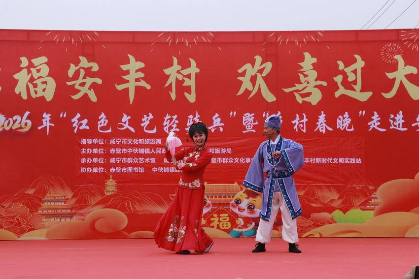 湖北日报客户端讯(通讯员吴杰、夏雨薇、陈实)2月7日,由赤壁市中伙铺镇、市文旅局主办,市图书馆、市群众文化事业发展服务中心承办的“幸福安丰村 欢喜过大年”乡村春晚在安丰村热闹开演,村民们欢聚一堂,观看文艺演出、非遗展、图书展,参与送春联下乡活动,围着篝火载歌载舞……用一个个充满烟火气的热闹场景,奏响乡村迎春节的和美乐章,热热闹闹迎接新年的到来。