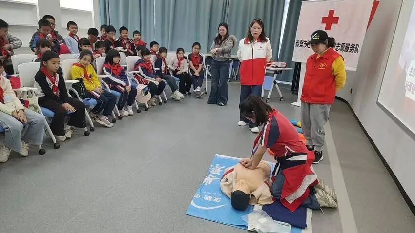 3月13日,赤壁市红十字水上救护志愿服务队走进赤壁市科技馆,为营里小学的学生们开展防溺水安全知识讲座及应急救护知识宣讲活动,将安全守护送到孩子们身边。