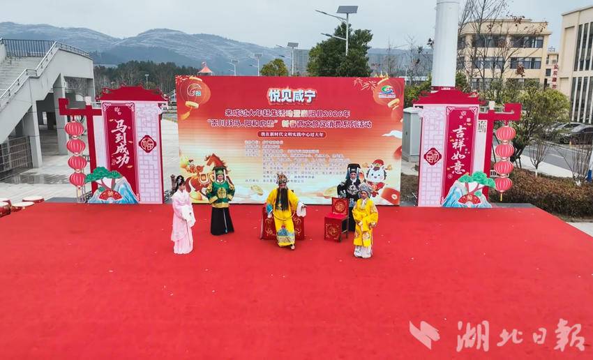 活动的一大亮点莫过于国家级非物质文化遗产——崇阳提琴戏的现场惠民展演。展演现场,《打金枝》《秦香莲后传》等经典剧目陆续登台演绎,悠扬婉转的琴声与唱腔回荡在热闹的集市上空,让传统年货采购增添了独具特色的文化体验。