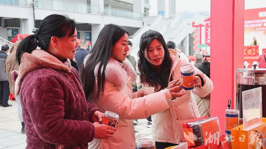 活动现场,三大特色展区人气爆棚。在本土特产区,黄精制品、麻花、野桂花蜂蜜、雷竹笋等来自崇阳县各乡镇的优质农产品和特色年货琳琅满目,成为市民一站式采购“崇阳味道”的首选;非遗手作区内,传统手工艺人现场展示精湛技艺,精巧的非遗作品吸引众多市民驻足观赏、购买;传统美食区香气四溢,各类本土小吃让人垂涎。