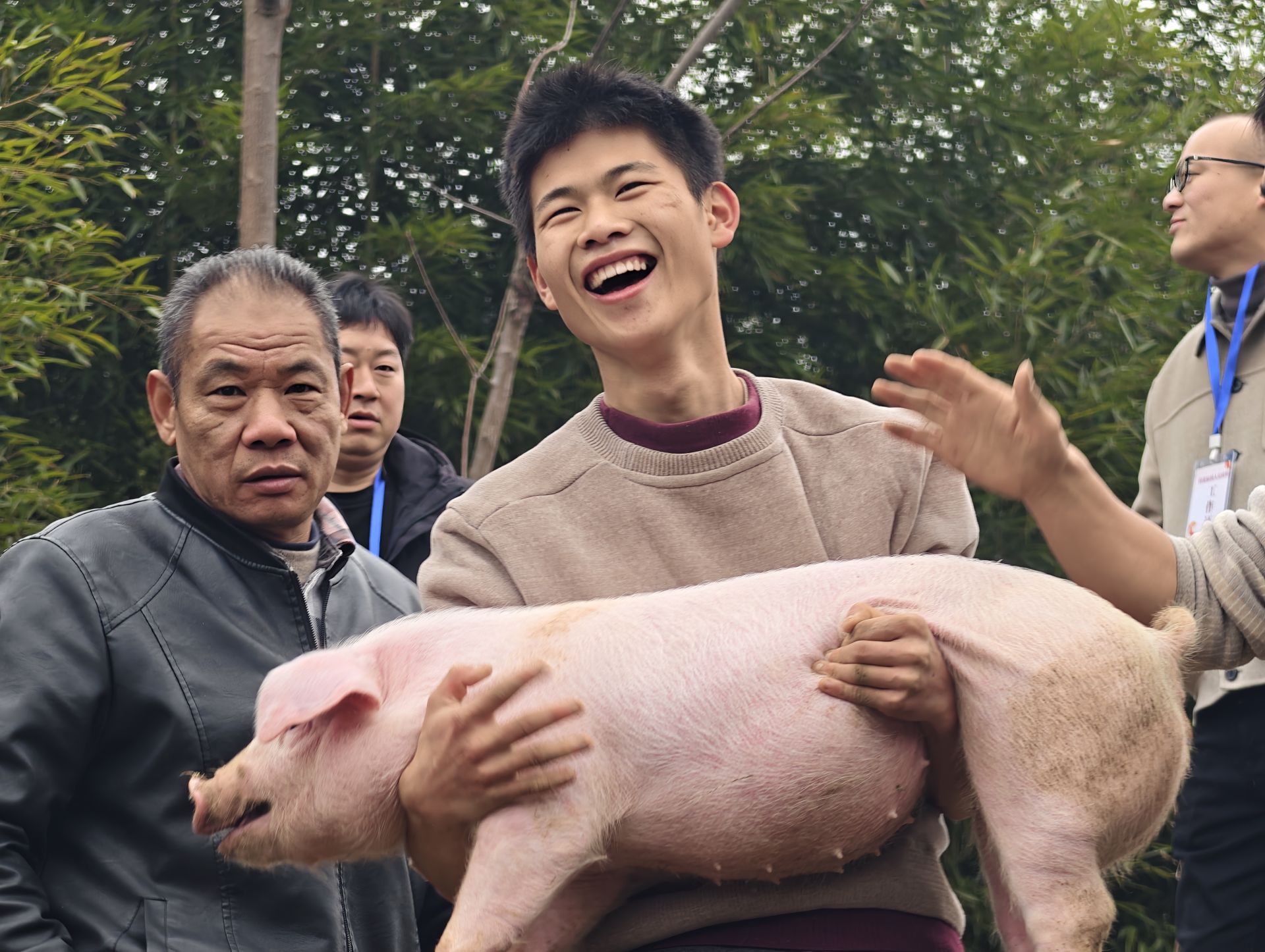 “小年要到了,今天抓到猪特别开心。我要把它养大,明年邀请大家来我家吃杀猪宴。”皮星光开心地说。