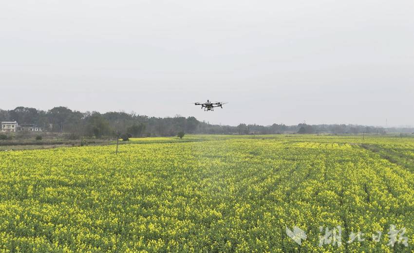 3月6日,记者来到石城镇花园村春早家庭种植农场,连片的油菜花海映入眼帘,金黄花朵迎风摇曳,香气沁人心脾。农场负责人叶际军正带领农户操作农用无人机穿梭花海精准施肥,现代化农机设备高效作业,为油菜丰产增收保驾护航。