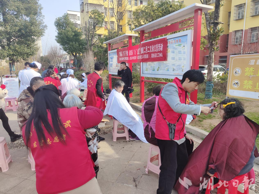 湖北日报客户端讯(通讯员雷佳敏)“太谢谢你们啦,我们老年人出行不方便,这次义诊义剪活动为我们提供了便利,真是暖到我们心坎上了。”3月11日上午,嘉鱼县鱼岳镇东街社区新时代文明实践站、嘉鱼县中医医院、嘉鱼县义工协会、嘉鱼县新时代眼镜在北门湖廉租房小区联合开展“幸福从‘头’开始 健康从‘心’出发”情暖二月二义诊义剪活动。