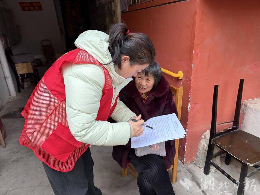 培训后,“志愿红”兵分多路深入社区。在老旧小区,志愿者轻叩房门、亮明身份,以拉家常方式交流。为行动不便的老人张乐意送上慰问品时,他们留下联系卡:“张阿姨,这是我们的电话,生活有需要或需了解政策可随时联系。”贴心话语让宣传更显温情。