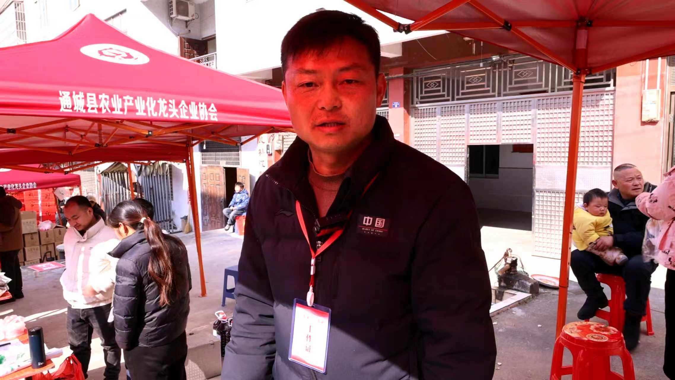 通城县马港镇马港村党支部委员 杨广:我们马港村今天主要是卖有机大米、豆干、山羊、土鸡土鸭,现在山羊和土鸡土鸭已经销售完了,上午的销售额已达到了三千多元。