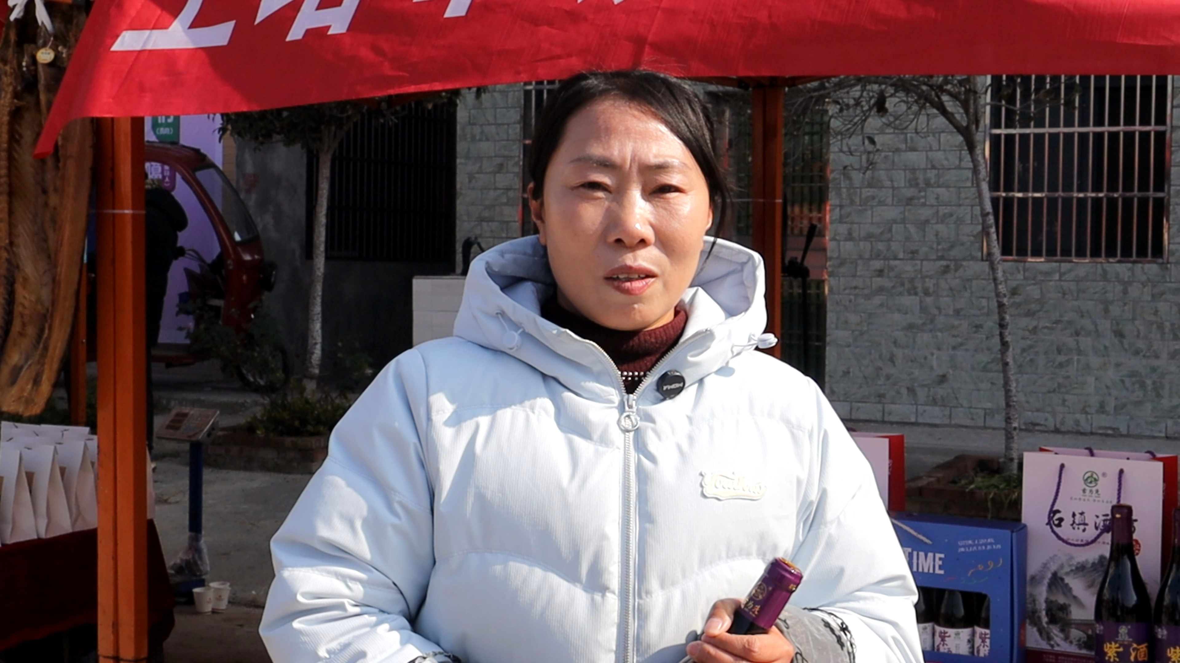 游客 毛珍:今天街上赶集很热闹,然后我买了很多东西,还有一部分在我妈妈那里,都是一些土特产,然后自己种的草莓,味道挺好的,一般都是平常很难买到的,希望这样的活动多多举办。