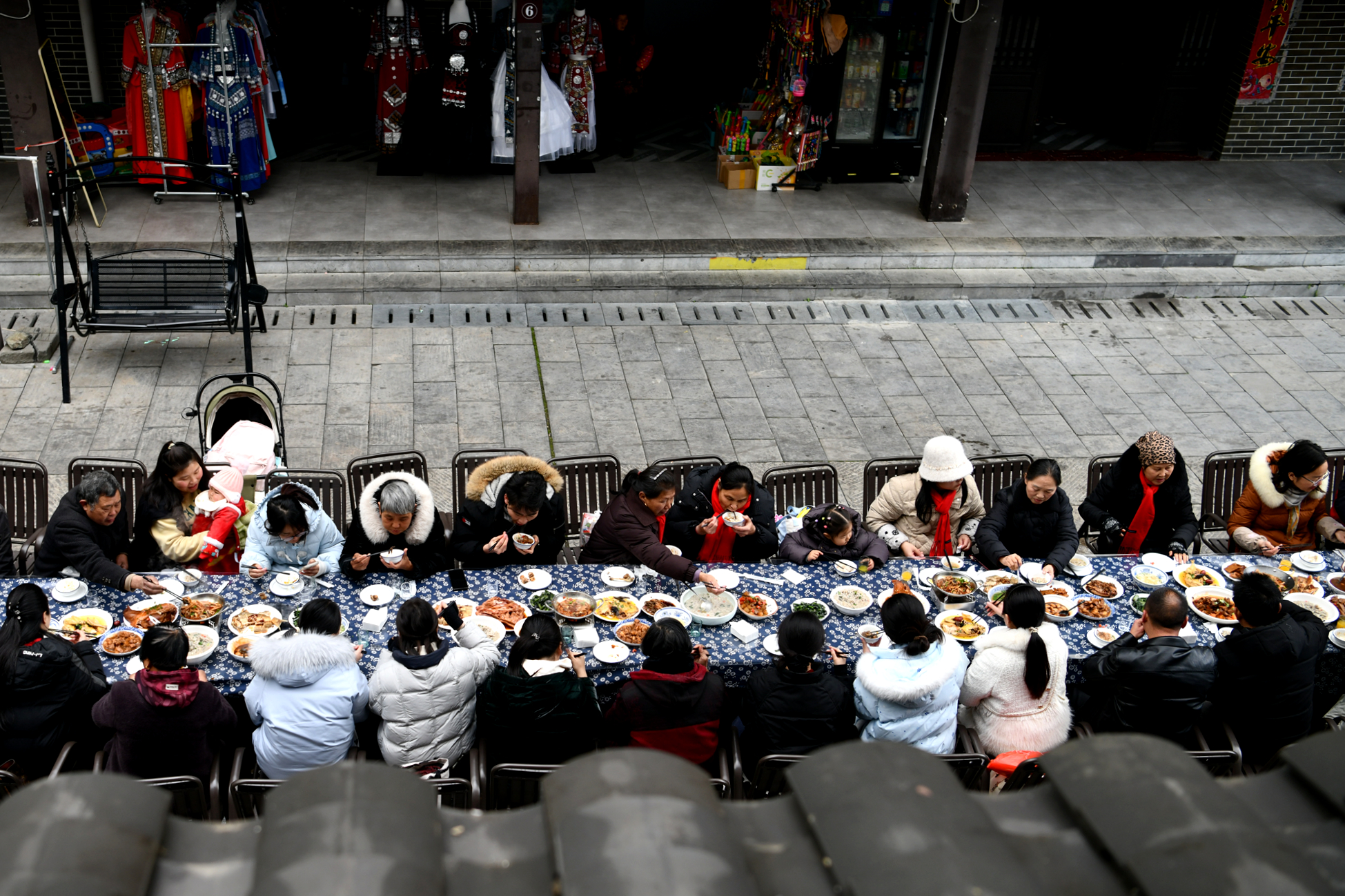 2026年1月27日,游客在湖北省咸宁市通城县药姑山古瑶村景区品长桌宴。