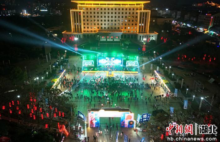 中新网湖北新闻2月8日电 (文雅)春节将至,年味渐浓。2月7日晚,湖北通山县政府广场,数千民众从四面八方赶来,共赴一场光影与音符交织的浪漫之约。