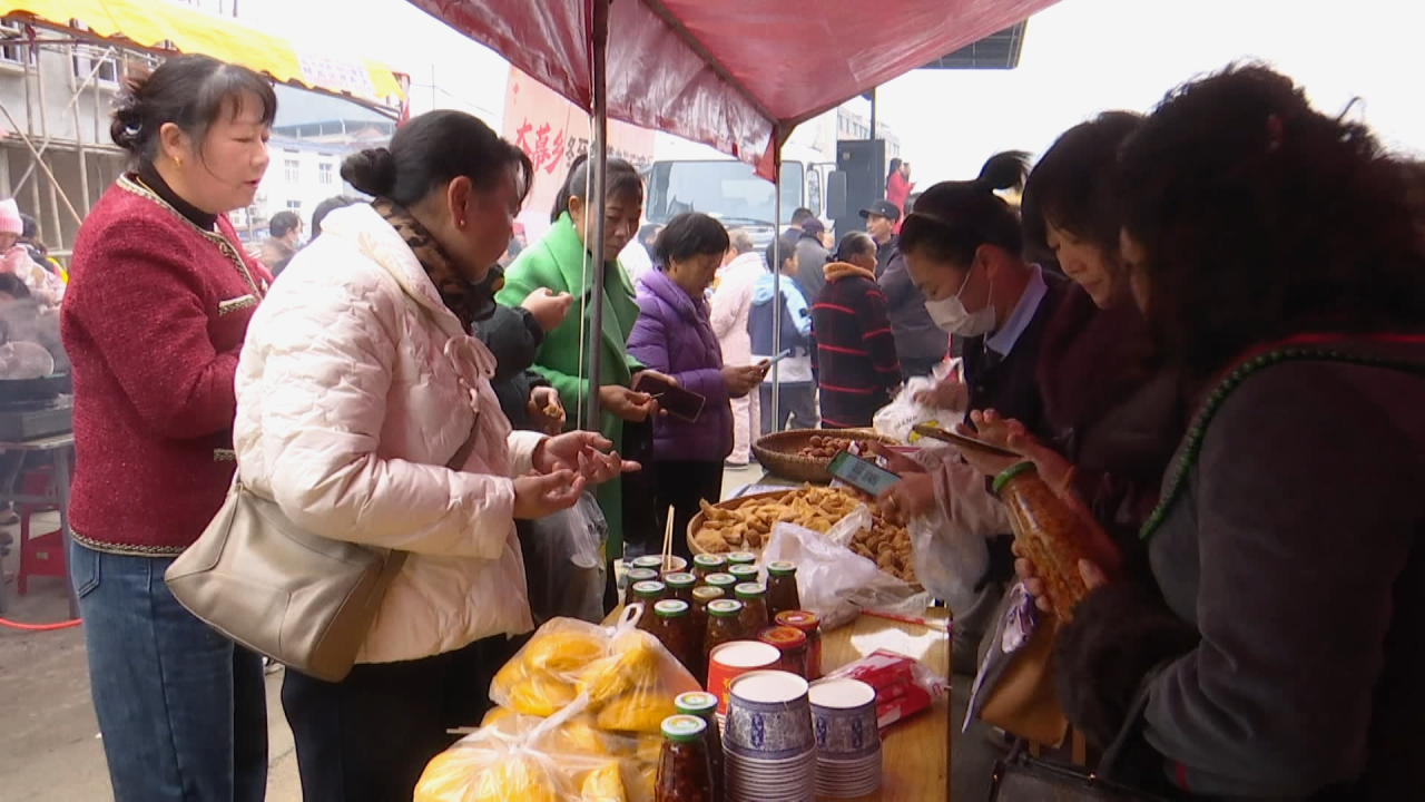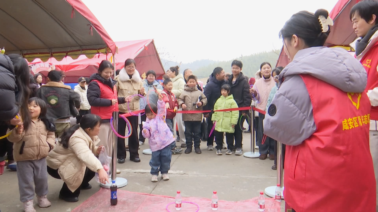 作为活动的“主角”,50个特色摊位一字排开,乡猪肉、手工苕粉、菜籽油、散养鸡鸭、烟熏腊肉等原生态农副产品琳琅满目,散发着诱人的乡土气息。摊主们热情招呼往来游客,游客们驻足挑选、争相采购,新鲜地道的乡味让赶集人满载而归。趣味互动区同样人气爆棚,投壶、套圈等传统游戏让老少同乐;现做的炸勺圆子香气扑鼻,非遗糖画造型精美,不仅唤醒了许多人的童年记忆,更让大家在互动体验中感受传统民俗文化的独特魅力。