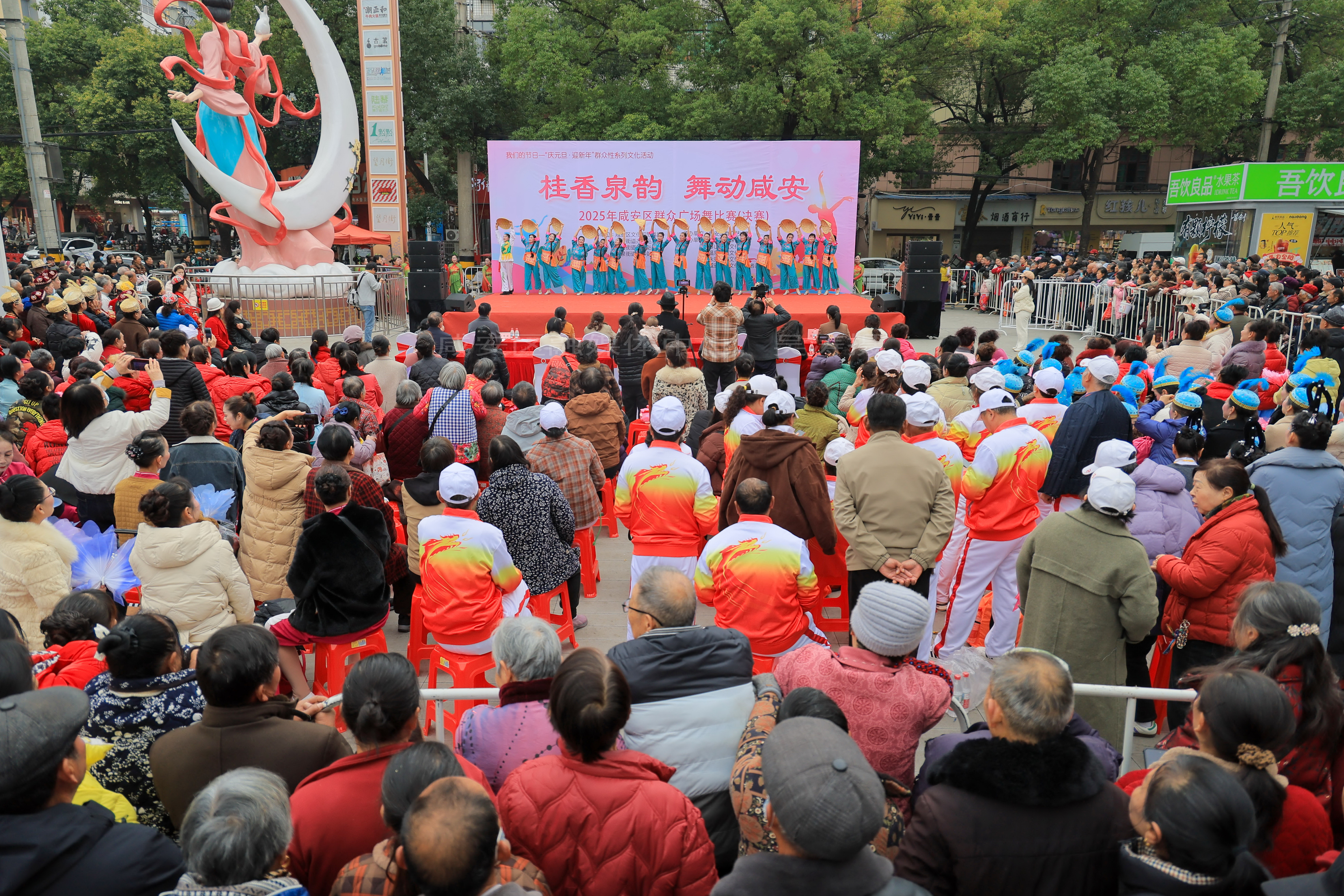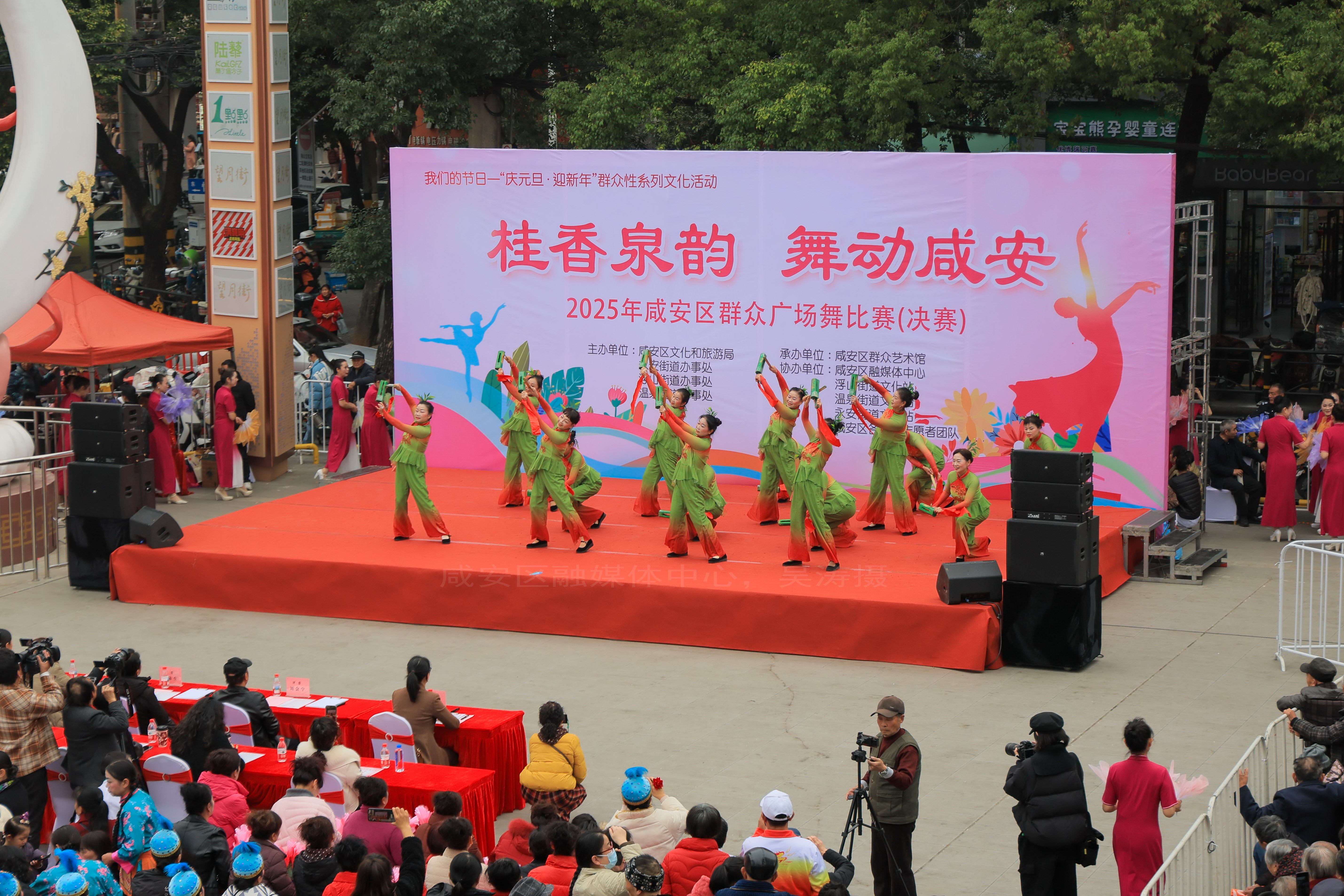 湖北日报客户端讯(通讯员吴涛、王媛媛)12月30日,咸安区望月街热闹非凡,“桂香泉韵·舞动咸安”2025年群众广场舞比赛在这里活力开赛。来自全区的14支群众舞蹈队伍轮番登场,以整齐的步伐、热情的舞姿,展现咸安群众健康向上的精神风貌。经过激烈角逐,比赛最终评选出一等奖1名、二等奖2名、三等奖3名及优秀奖8名。活动现场掌声不断,欢声笑语洋溢,成为冬日里一道亮丽的风景线。