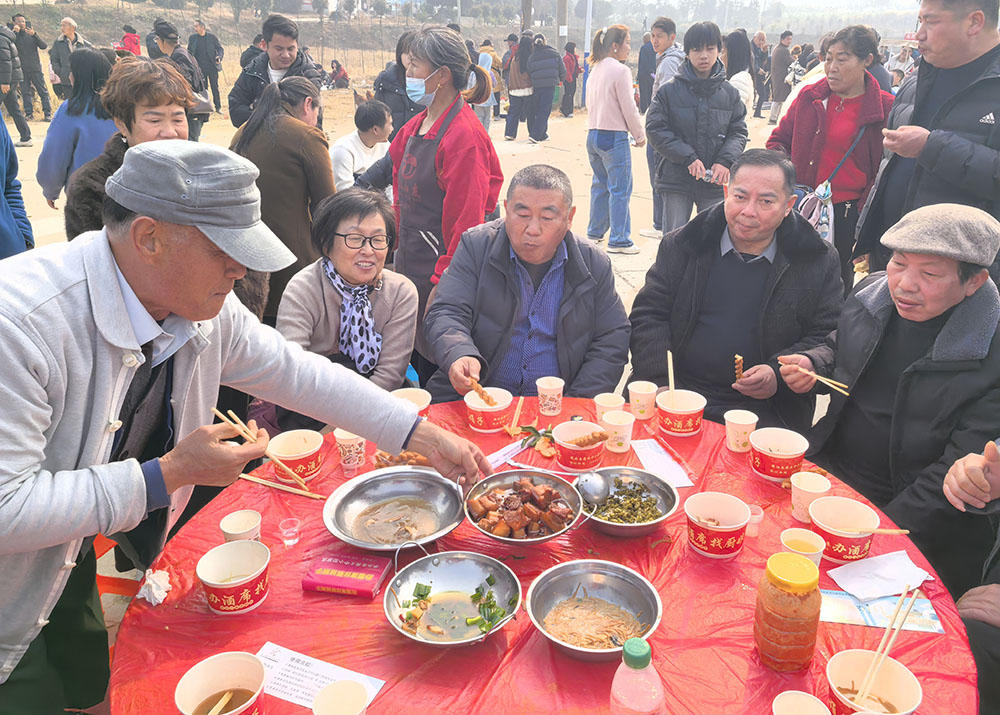 为保障活动安全有序开展,双溪桥镇政府提前协调公安、交警现场值守,市场监管部门全程监督食品安全,并组织百余名由镇村干部、返乡人员组成的“红马甲”志愿者活跃在各个环节,负责引导交通、维护秩序、端菜洗碗等服务工作。同时,40户村民主动为外地游客提供免费住宿,展现出当地淳朴热情的乡风民情。