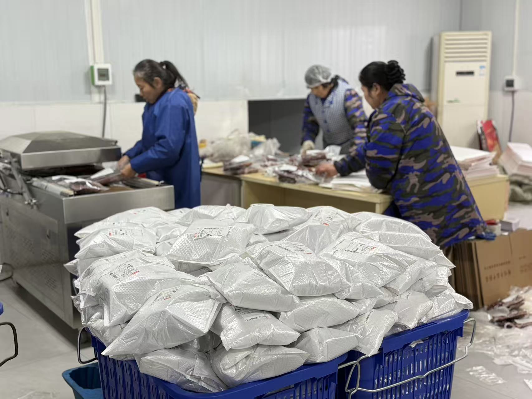 然而,订单的快速增长也对传统生产工艺提出了挑战。随着市场认可度不断提升,企业生产全面进入节前高峰,日均发货量达5000至6000斤,订单超过2000单,产品远销全国。截至目前,销售额已突破1000万元,预计春节前还将迎来约1000万元的销售增长。为应对生产压力、同时保证风味如一,今年企业试运营了数间智能熏房,通过精准控温、控湿与控烟,在提升效率的同时,也保留了柴火慢熏的独特风味。