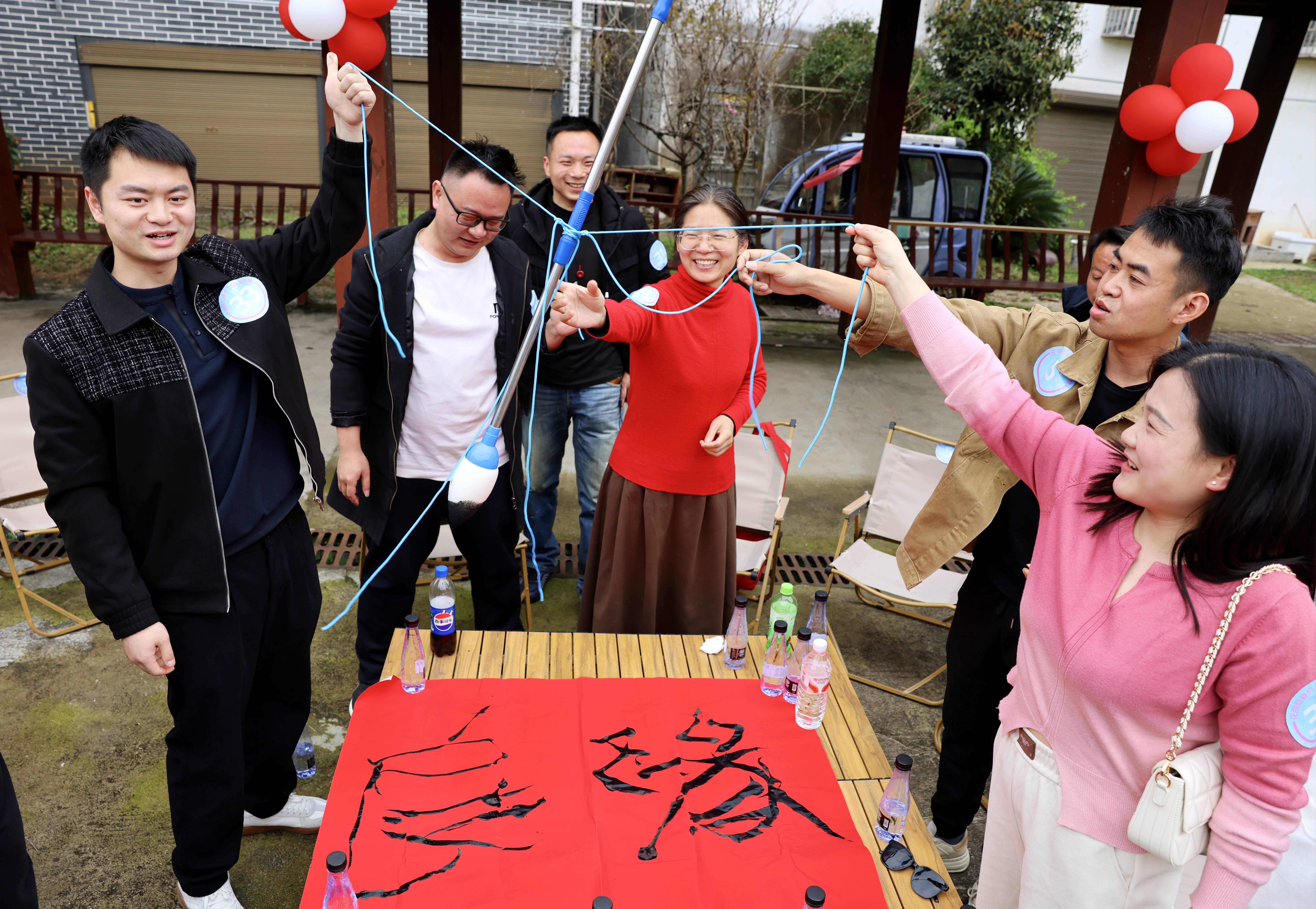 三月的马桥油菜花海正值盛花期,金黄的花朵随风摇曳,与蓝天白云交相辉映,铺展出一幅动人的春日画卷。活动在花海凉亭中拉开帷幕,“桃花朵朵开”“巨人脚步”“神笔马良”等互动游戏迅速点燃了现场气氛,青年们在欢声笑语中拉近了彼此间的距离。活动还设置了青春为家乡代言环节,邀请西部计划乡村振兴志愿者现场推介所在乡镇的农特产品,展现了青年志愿者服务基层的担当作为。