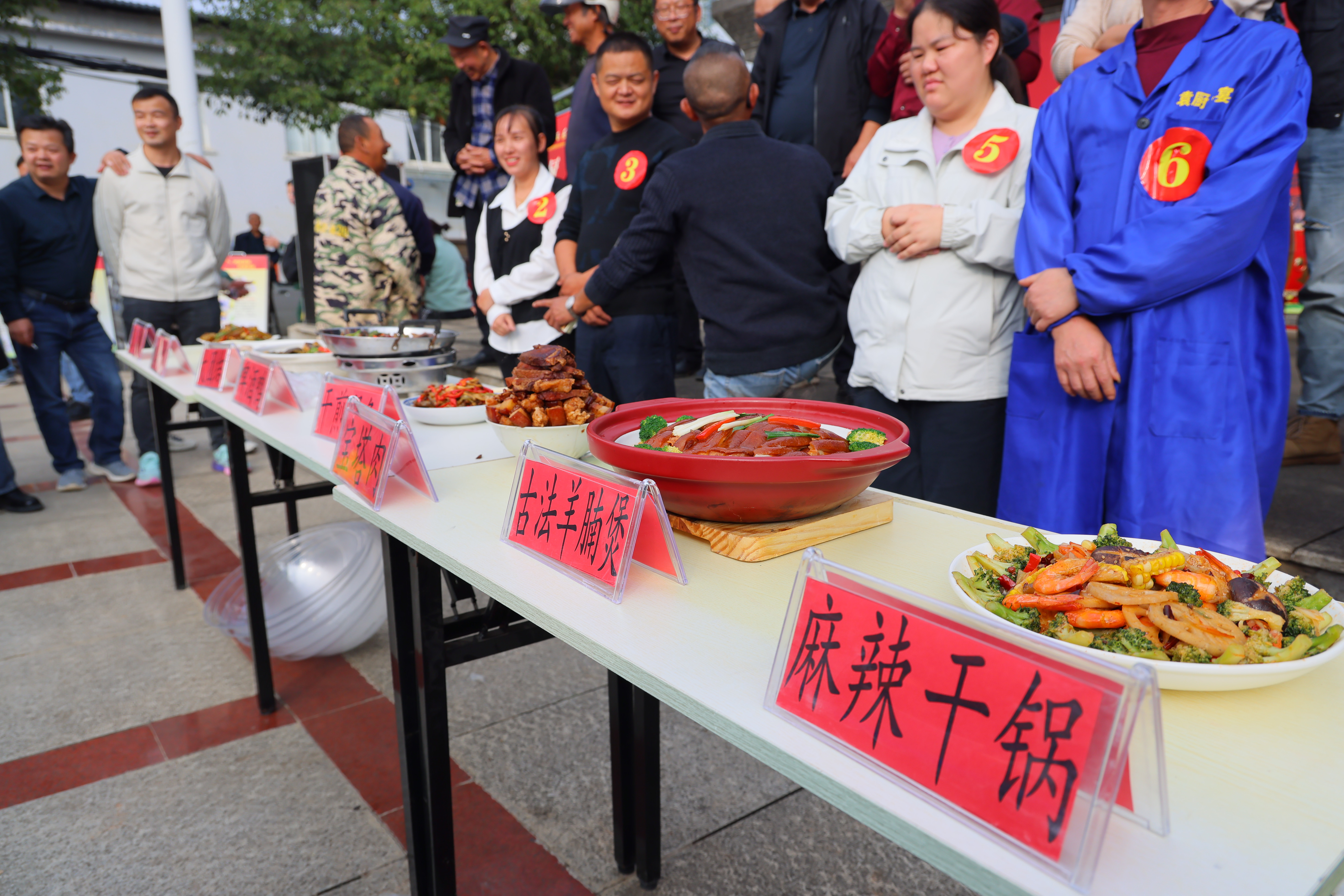 “我爱我家”厨艺大赛上,各村“厨神”纷纷亮出拿手好菜,以家常美味传递“家”的温暖与分享的喜悦。随后的文艺汇演将整场气氛推向高潮——大鼓《威风鼓》气势磅礴,灯笼舞《祖国新天地》优美动人,表演唱《百善孝为先》弘扬传统美德,小品《三花要彩礼》《报喜日》则以轻松幽默的方式倡导婚事简办、抵制高额彩礼,引导树立文明新风。节目中穿插的移风易俗、禁毒反诈知识有奖问答,更吸引观众踊跃参与,在热烈互动中深化认识、凝聚共识。