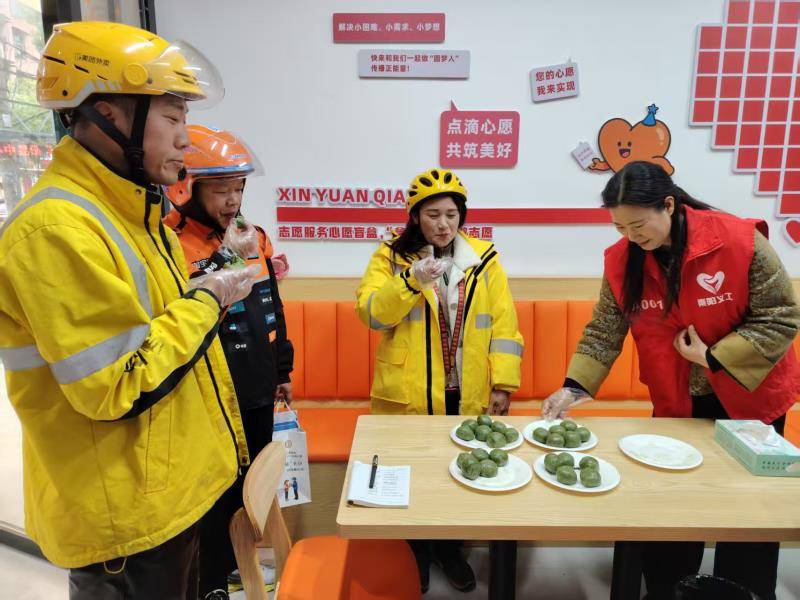 “平时都是我给别人送餐,今天换别人给我送青团了,心里热乎乎的。”一位刚结束早班配送的外卖小哥接过青团,轻咬一口,软糯香甜的口感令他连连称赞。活动现场,外卖员、快递员与志愿者们围坐一起,品青团、拉家常。那一抹翠绿,不仅承载着清明时节的文化记忆,更化作萦绕心头的“家”的温暖。