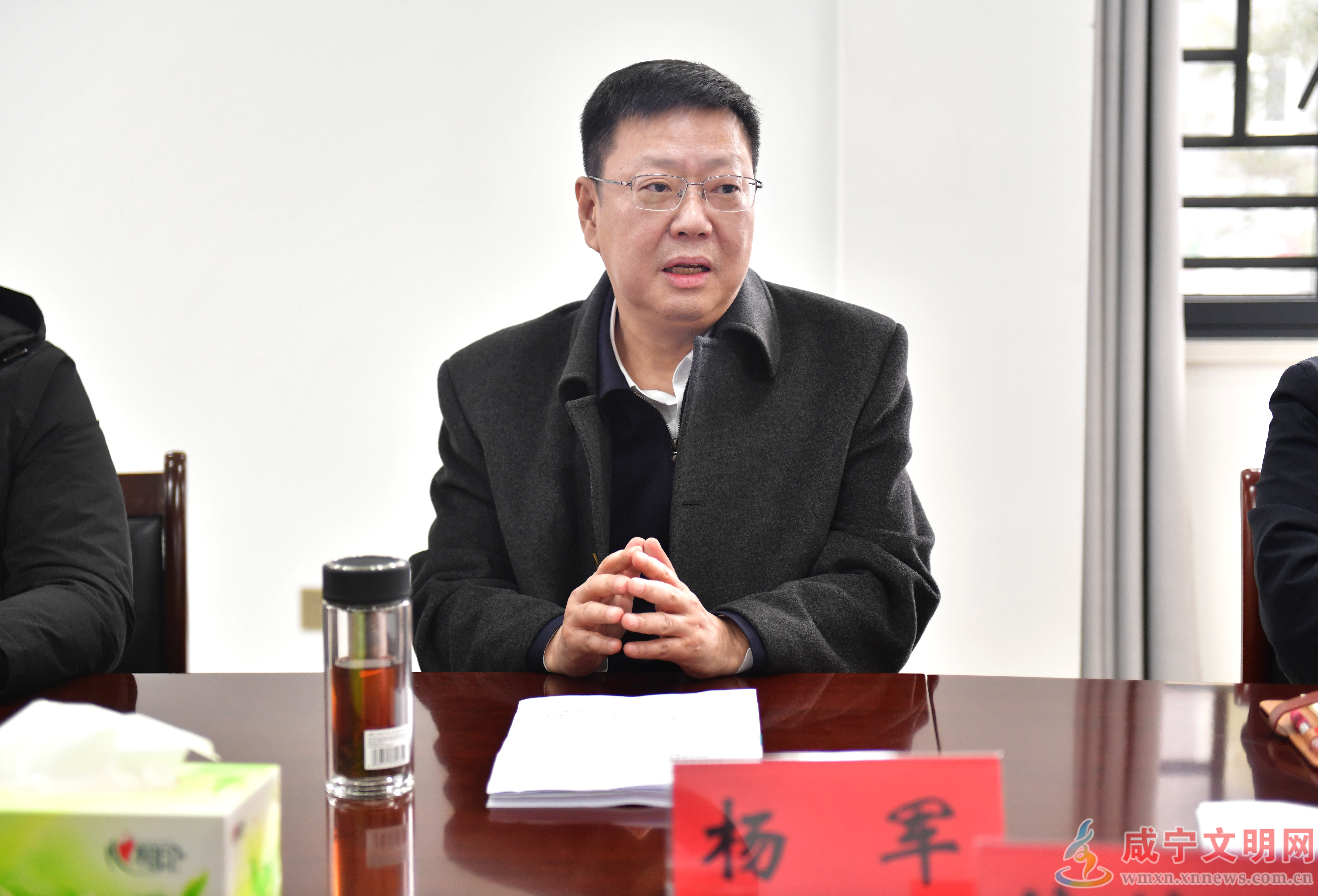 在信访接待室,杨军就赤壁市一起房地产领域信访案件,与群众代表、属地和相关部门负责人以及律师座谈,详细了解项目有关情况,认真听取群众意见诉求,共同研究问题解决措施。