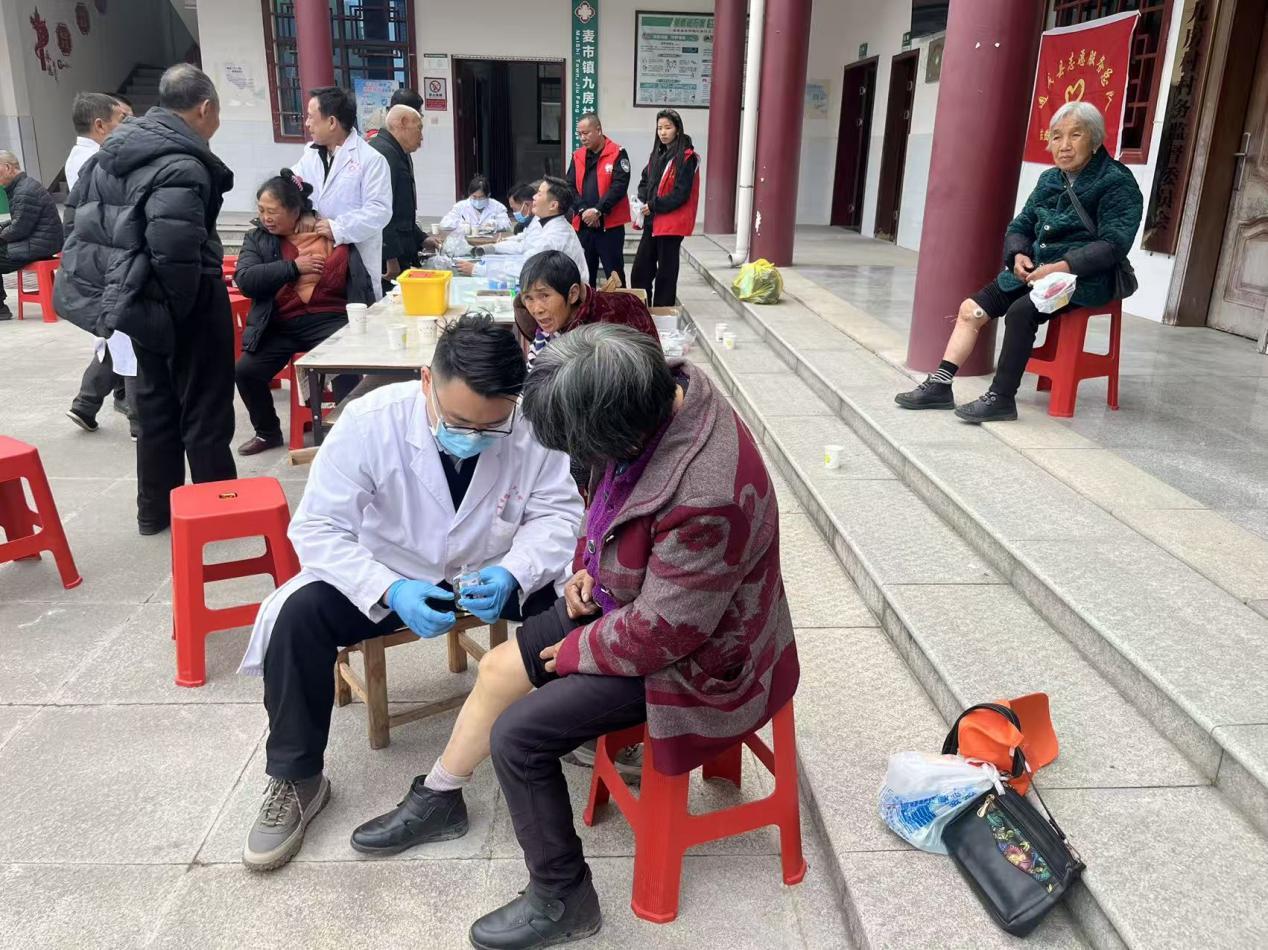 下午2时,九房村委会内暖意融融,义诊活动准时开始。镇卫生院的医护人员迅速布置好临时检查点,有序为前来参加活动的老人进行血压、血糖测量和心电图检查。他们耐心询问每位老人的身体状况与用药史,针对常见慢性病提供专业的健康咨询和个体化的生活指导。活动现场,部分常用药品被免费发放到有需要的老人手中,医护人员细致讲解服用方法和注意事项,确保用药安全。