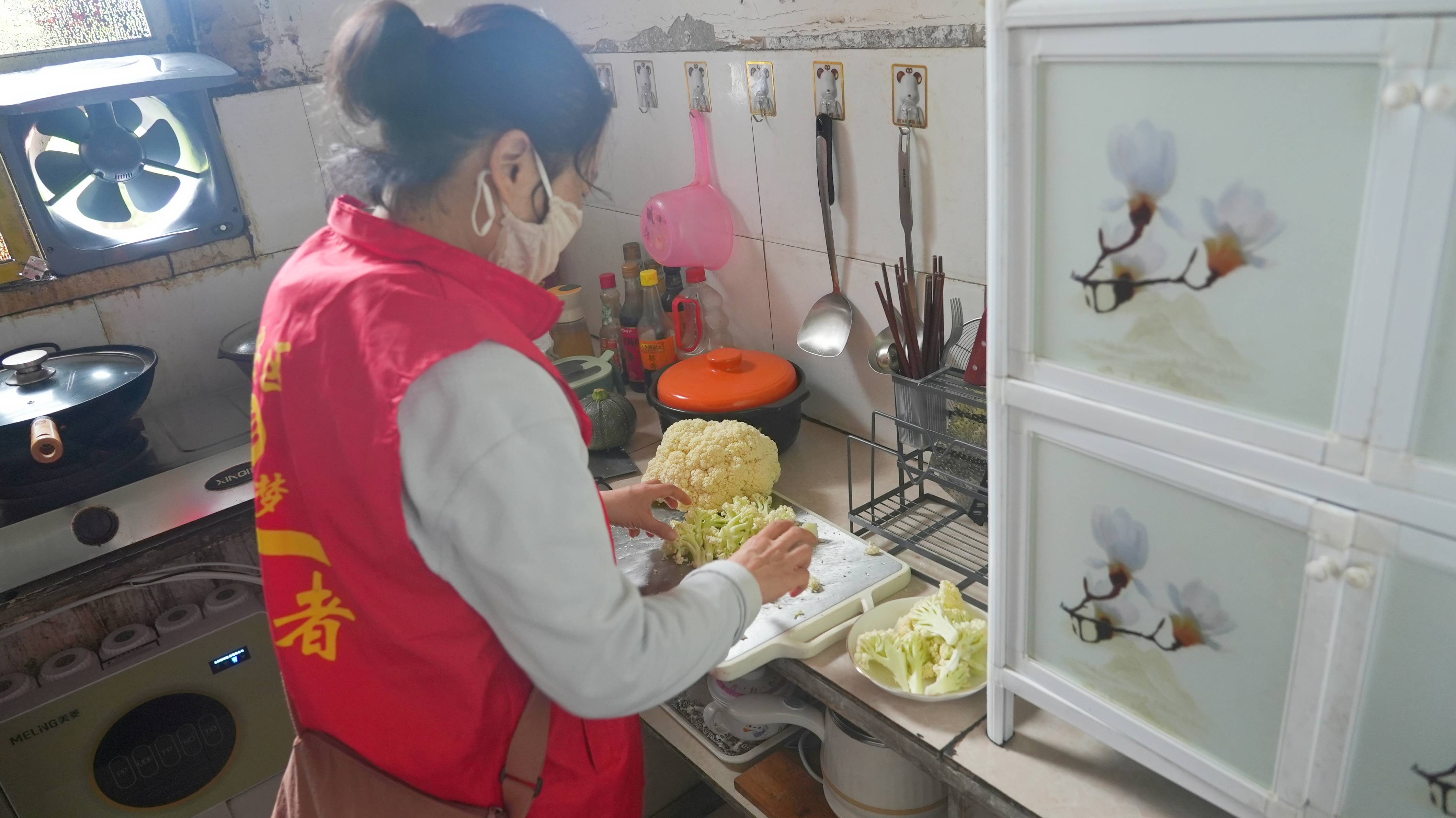 厨房里,志愿者们分工协作,洗菜、切菜、炒菜,锅铲声与欢笑声交织。老人眼眶有些湿润:“家里难得这么热闹。”